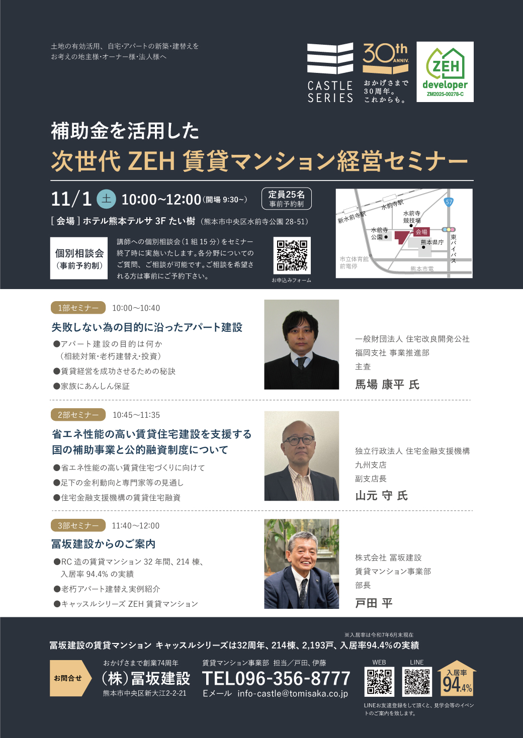【いよいよ今週末開催!補助金を活用した 次世代ZEH賃貸マンション経営セミナー】