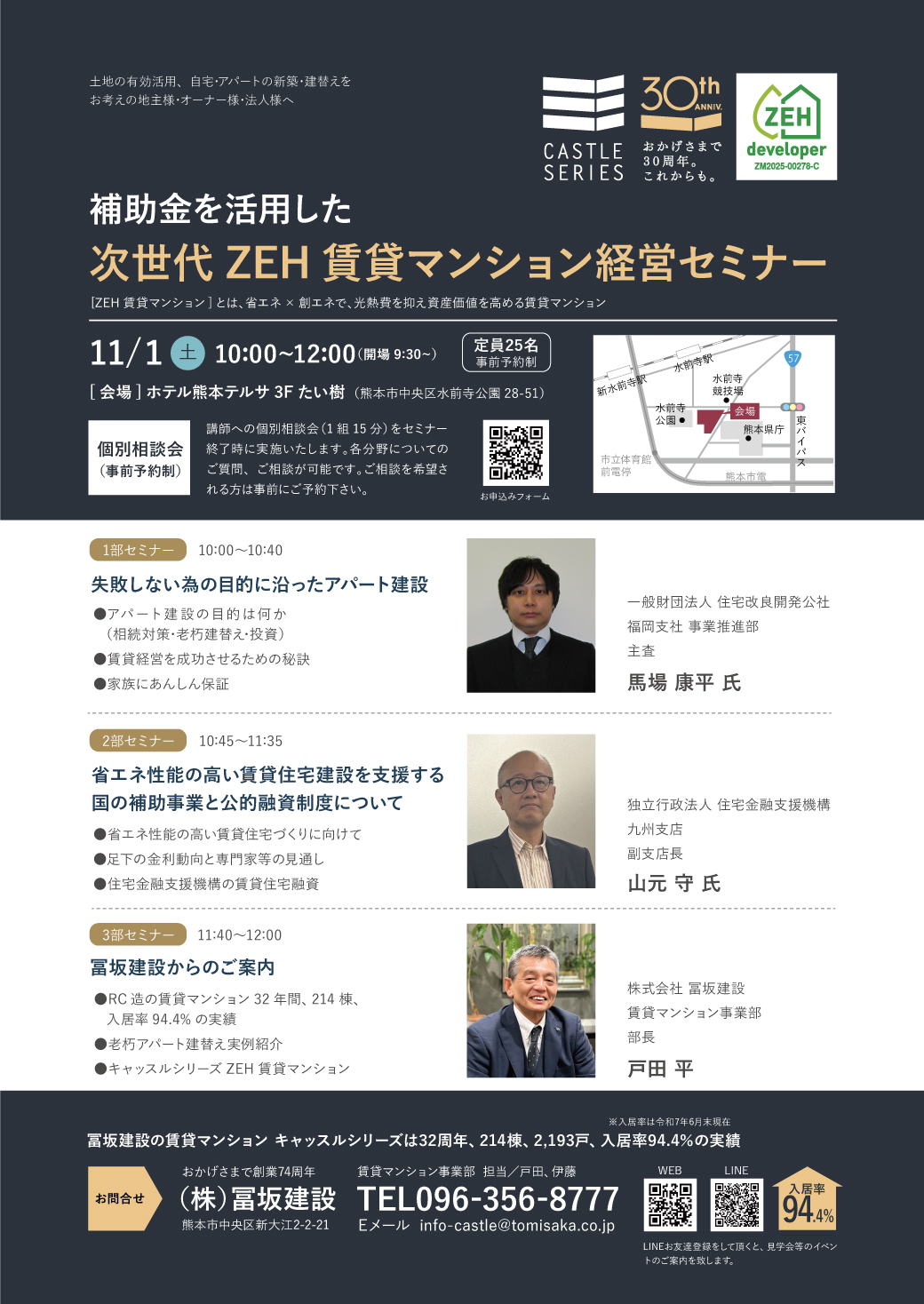 【11月1日セミナー】補助金を活用した次世代ZEH賃貸マンション経営セミナー